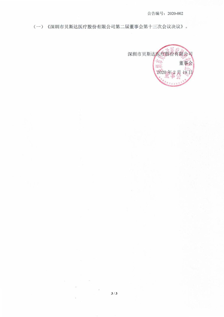 2020-001-贝斯达-第二届董事会第十三次会议决议公告