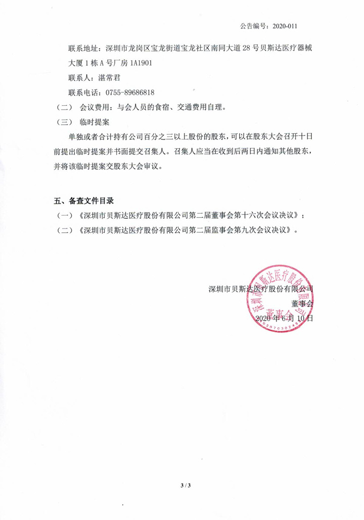 2020-010-贝斯达-2020年第三次临时股东大会决议公告